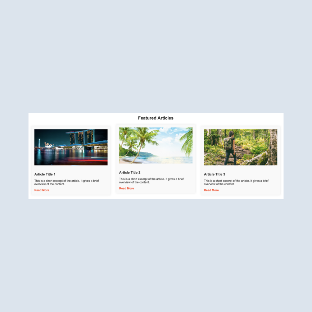 • Featured Articles: Grid layout of featured posts with large thumbnails and short excerpts.